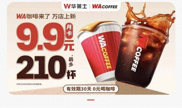 但有意思的是,一边是头部玩家理性回调,另一边却仍有新玩家在疯狂“撒币”。近日,华莱士旗下“WA咖啡”推出9.9元月卡,宣称每月最多可领210杯咖啡,单杯成本不足5分钱;