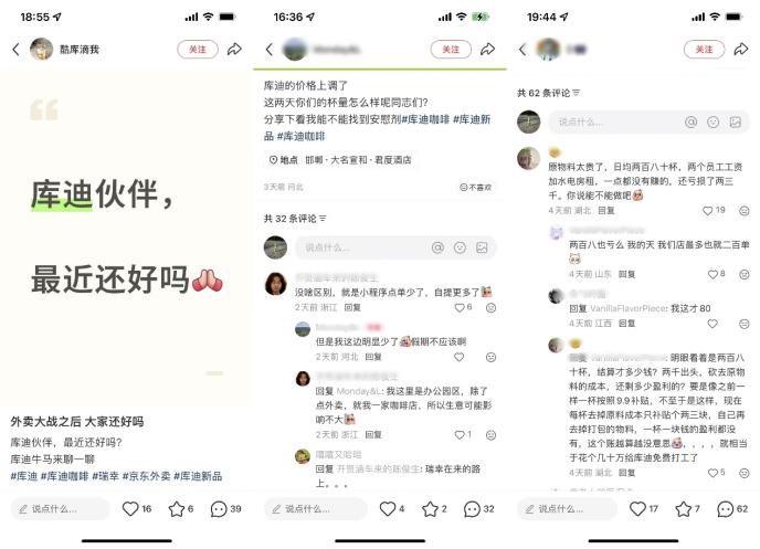 去年突如其来的外卖大战,虽然为库迪加盟商带来了一波流量,但部分单品价格低至1.68元,即便有库迪的“兜底”政策,也有加盟商表示,在外卖平台抽成后,单杯利润其实不高。