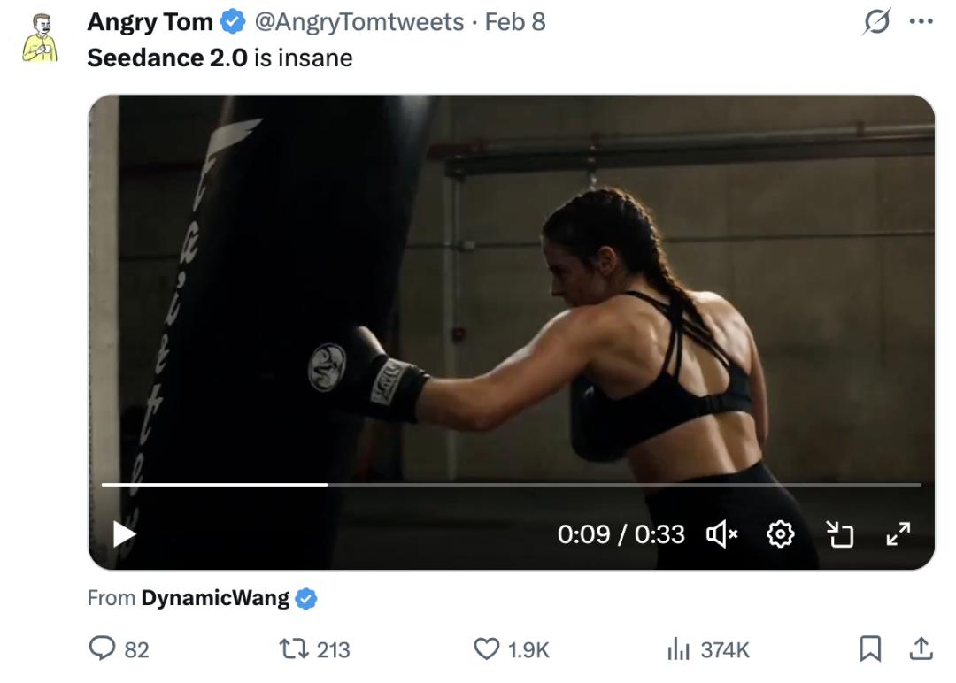 刚被“AI杀死SaaS”,引发全球资本市场软件股震荡的消息刷屏,这不,“AI颠覆影视工业”的论调又甚嚣尘上,只不过这次的主角是中国公司——字节跳动于2月7日开启灰度测试的,AI视频生成模型Seedance2.0,迅速在行业内外引发关注。