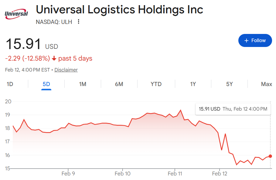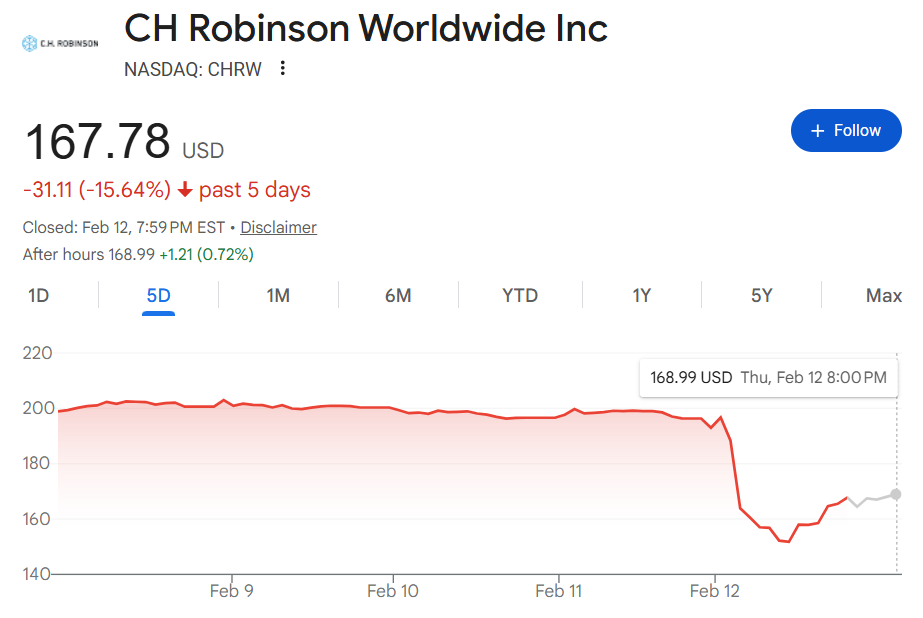 周四,物流和货运运营公司罗宾逊全球物流(CH Robinson,CHRW ) 和环球物流控股(Universal Logistics,ULH)的股价均出现两位数的惨烈下跌。