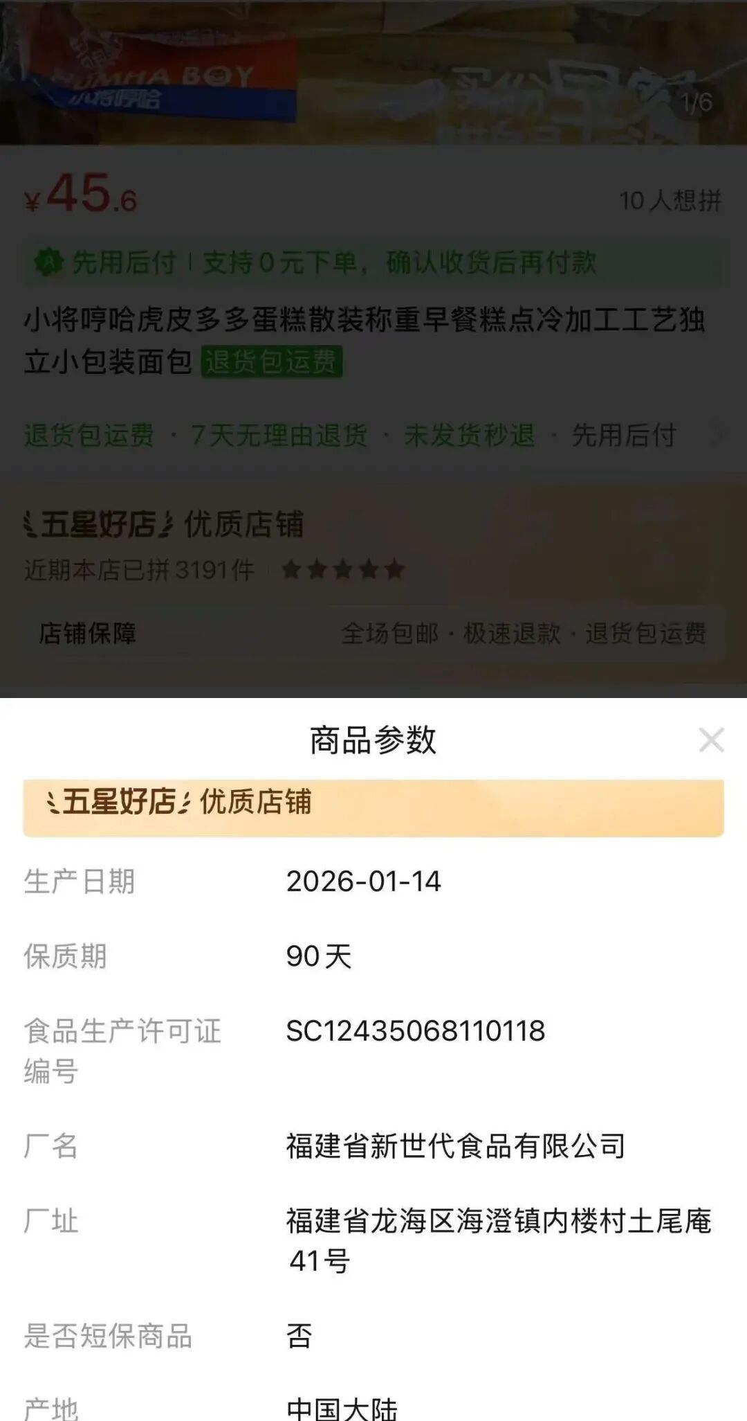 以“冷加工糕点”类食品为例,平台进一步细化了对该类商家的资质审查,拓展了商家主体信息的透明度。