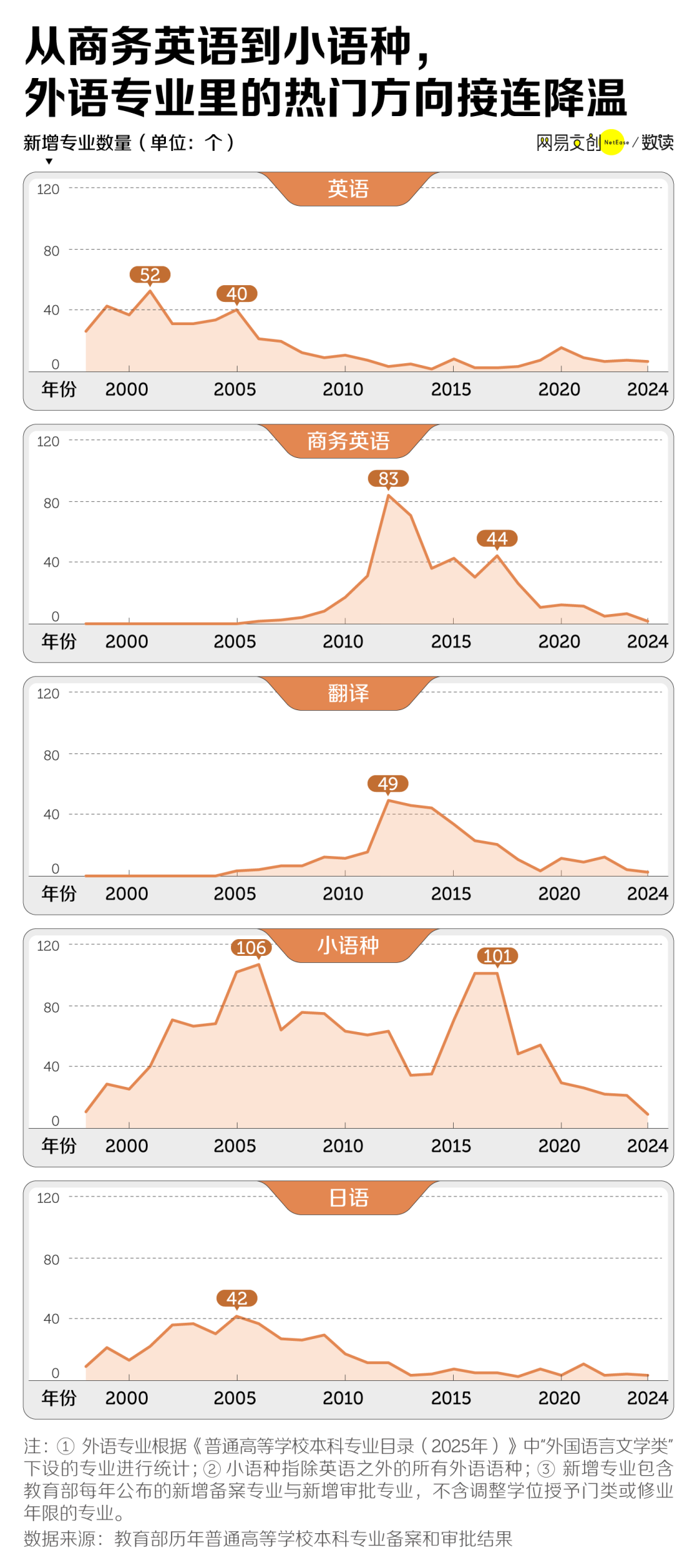 但风口来得猛,去得也快,2018 年起,小语种新增数量几乎腰斩,此后一路走低,到 2024 年只新增 9 个。