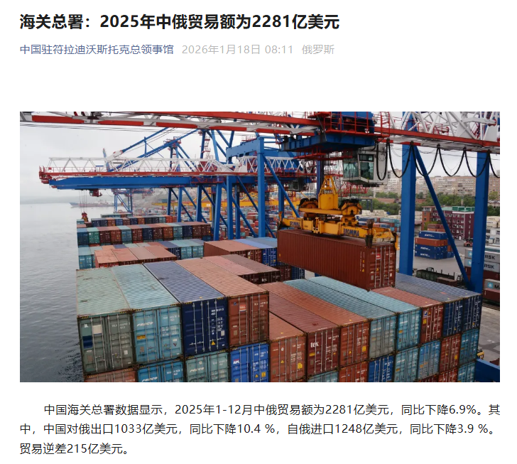 大反转来了吗?刚刚过去的2025年,中国外贸顶着关税战的压力,又逆势增长了3.8%,但令人诧异的是,中俄贸易居然不增反降,同比下滑了6.9%。