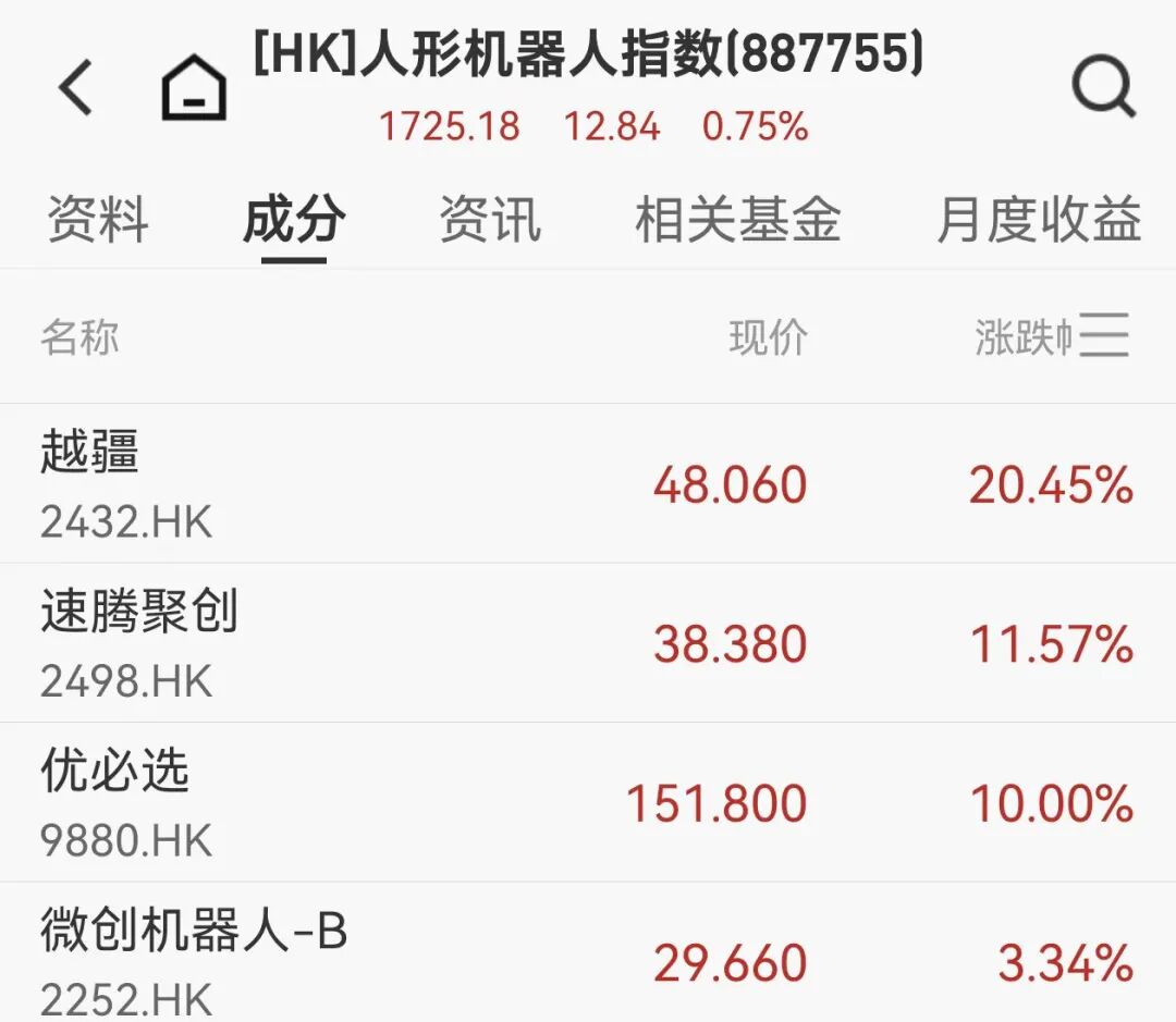 机器人概念大涨,越疆涨超20%,速腾聚创涨近12%,优必选涨10%,三花智控涨超3%。消息面上,马年春晚引爆机器人热潮,松延动力、宇树科技、魔法原子、银河通用四家机器人公司今年分别亮相小品、武术、歌曲及微电影四大类节目。据悉,一系列精彩的机器人表演不仅吸引了广大观众的关注,引爆社交网络,也带火了平台销售。