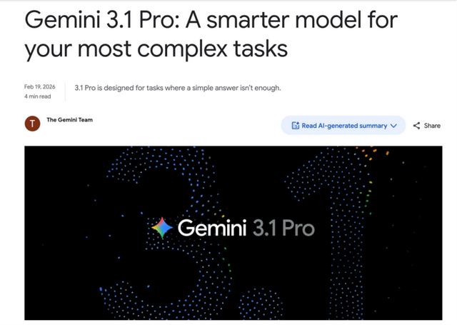 而如今的Gemini 3.1 Pro Preview和Gemini 3 Deep Think有千丝万缕的关系,官方表示“直接构建在Gemini 3 Deep Think的经验和技术之上”。相当于把Deep Think的核心推理提升技术“下放”到更广泛可用的Pro模型中。