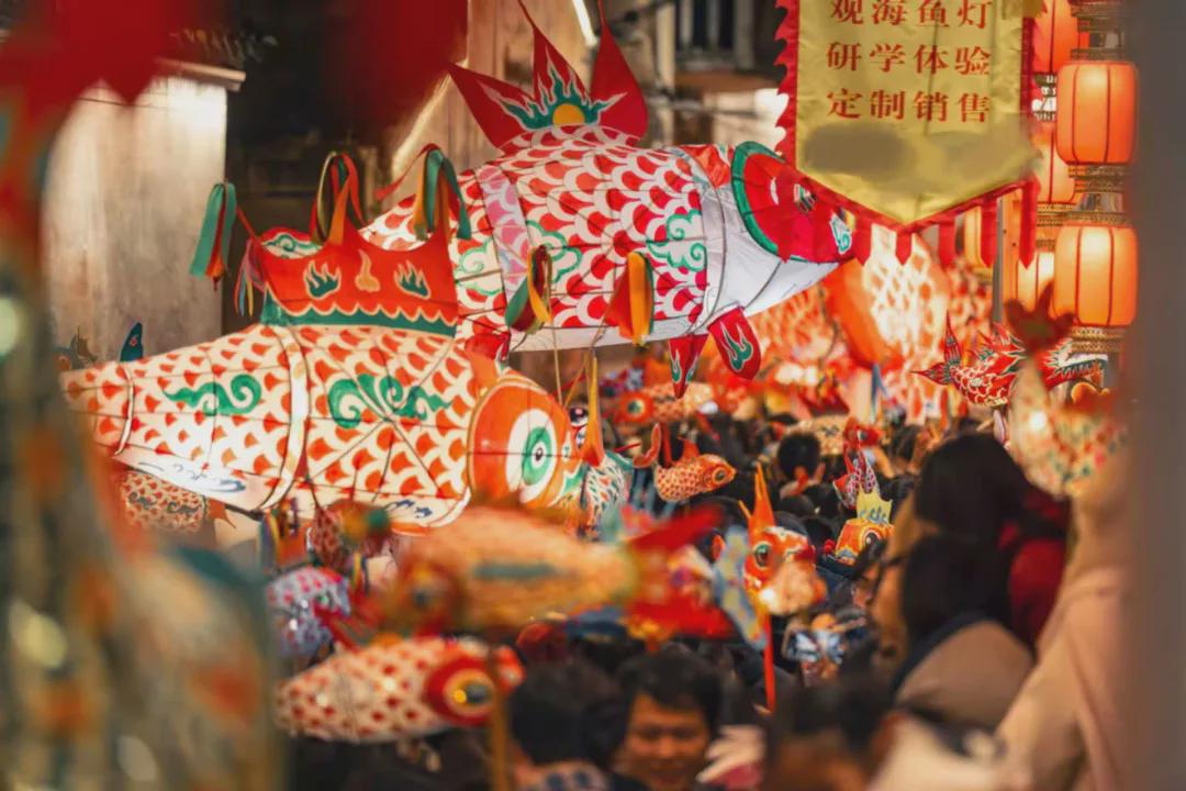 基于此,黄博伟带领团队将鱼灯巡游策划成面向游客的活动,设计了各种鱼灯相关的体验活动和文旅纪念品,指导村民打开经营思路,将流量通过产品转化成可观的收益。