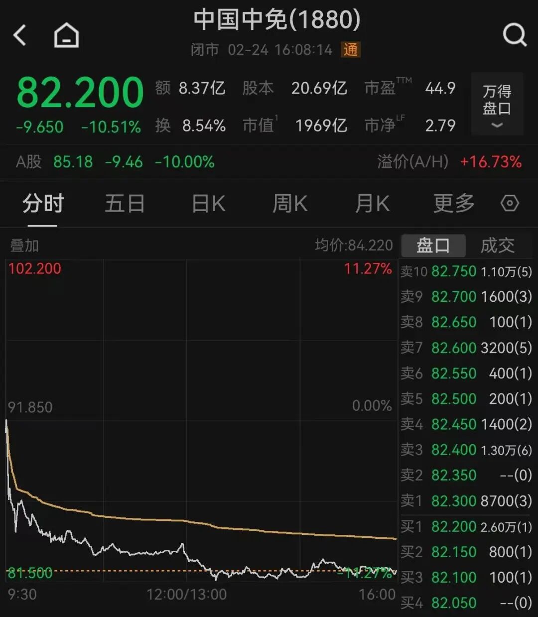免税板块走低, 中国中免跌逾10%。