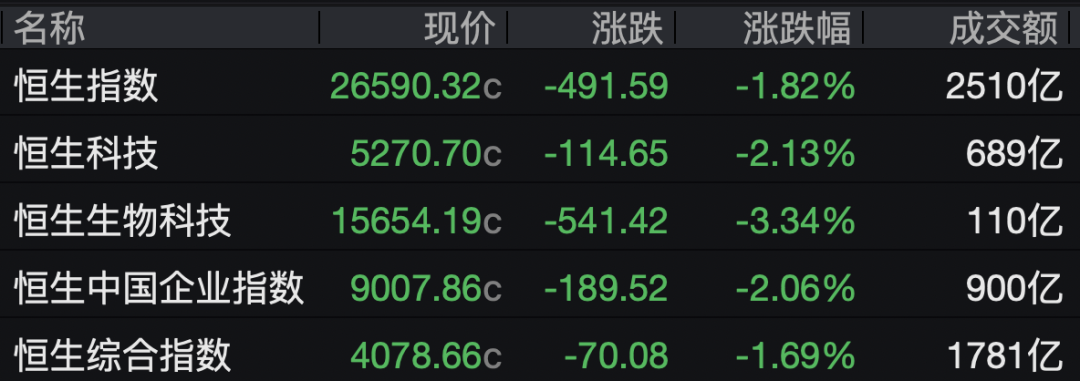 2月24日,香港恒生指数收跌1.82%,恒生科技指数跌2.13%。