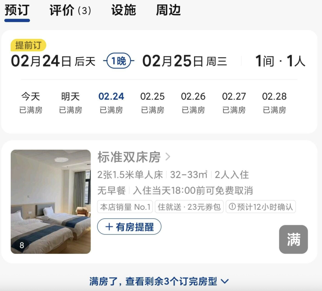 该有的配置全部都有,价格便宜到回到20年前,更重要的是,“终于可以在云南无负担吃菌子了”。被迫购买高价酒店的打工人看到去医院住酒店的天才想法后立马下单,直接在春节期间就把2月的房间全部订完。