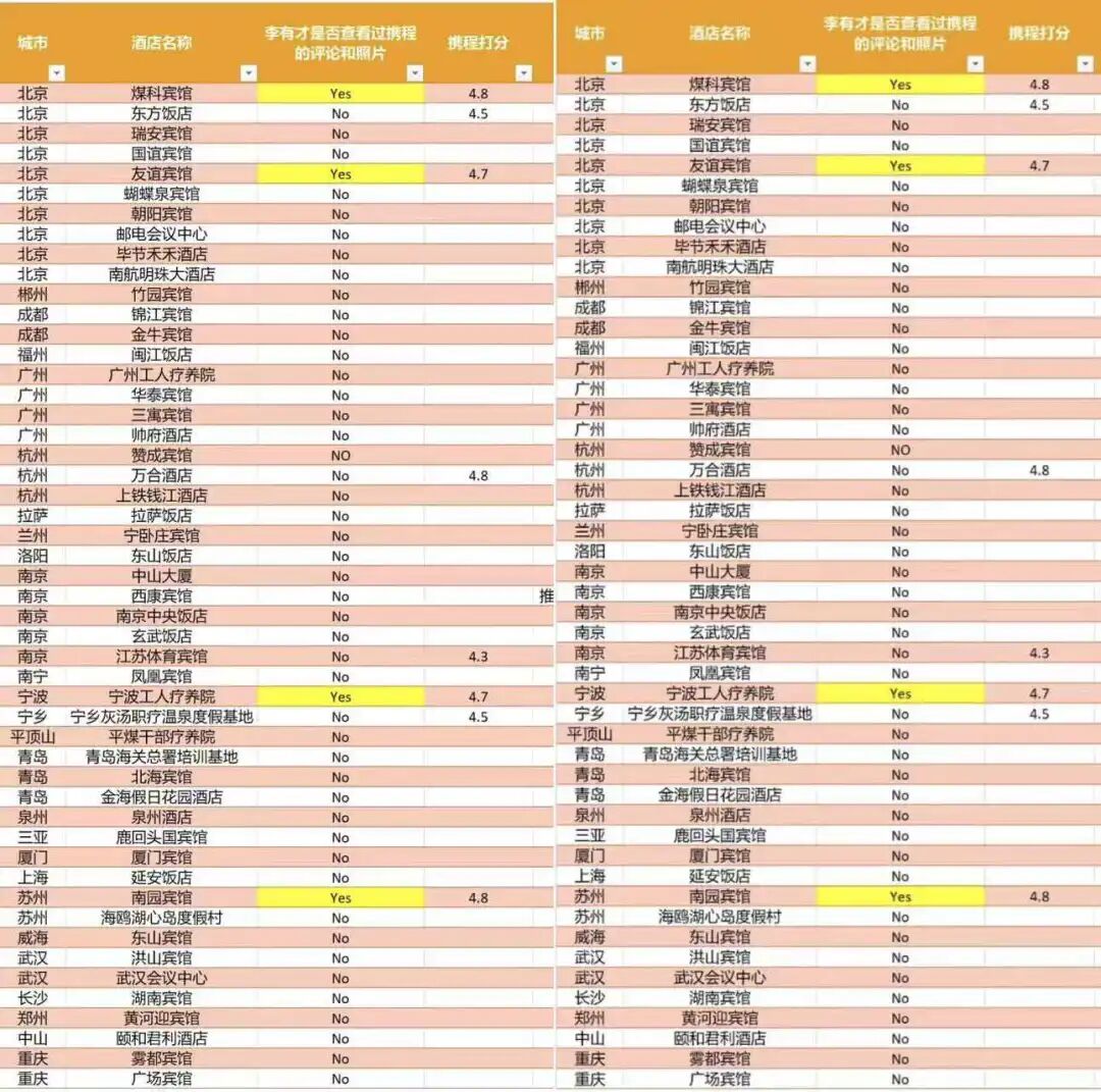 网友统计的老干部酒店(图源:小红书@李有才)