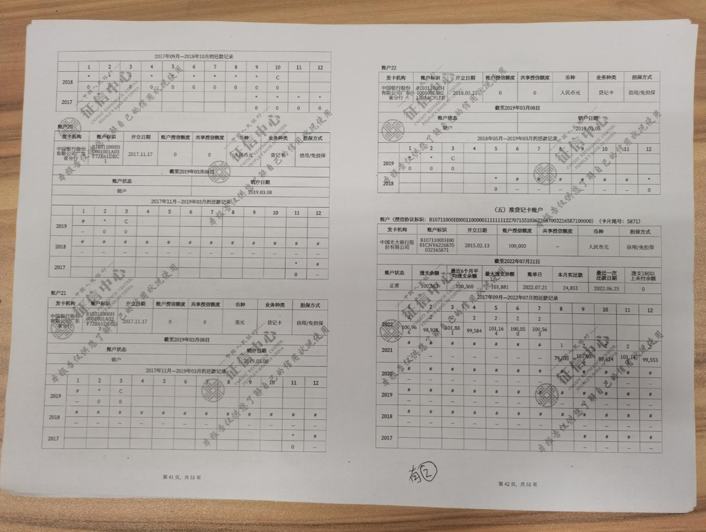 红星新闻记者获取了覃先生2017年9月至2022年7月的征信报告,报告显示其2021年9月至2022年7月时,那张“乐惠金”准贷记卡的还款记录为“2”。2021年11月份,中国人民银行中山市中心支行向当时各中山银行机构下发的《正确解读个人信用报告“准贷记卡”还款记录的提示函》显示,记录"1"对应逾期1-30天,"2"对应逾期31-60天。
