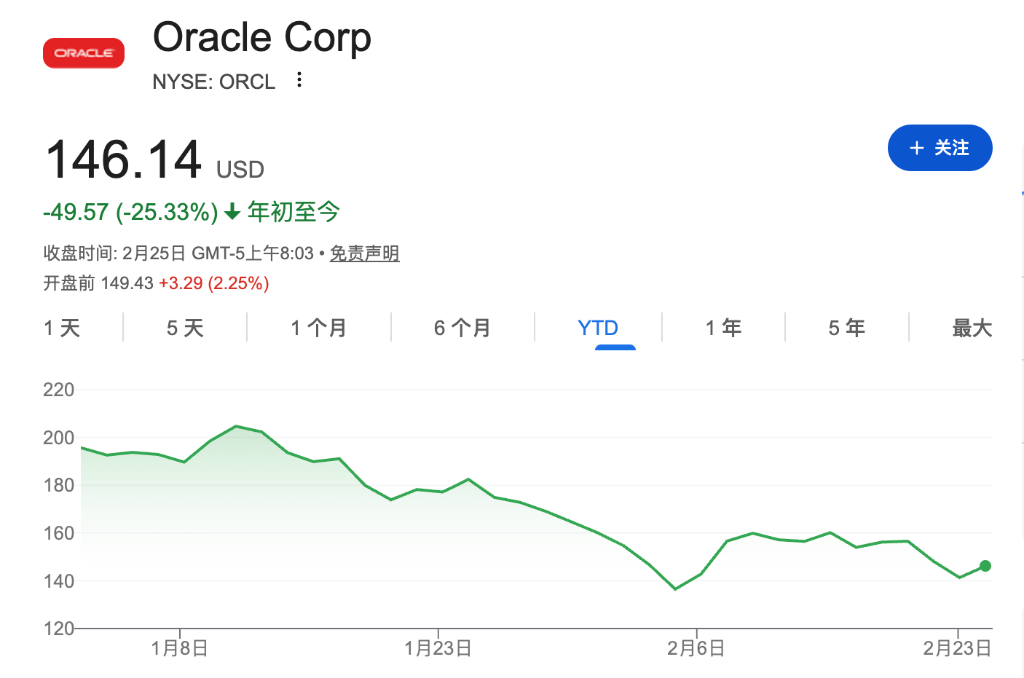 甲骨文股价承压,年初至今已跌超25%,但华尔街投行奥本海默认为,这恰恰为投资者提供了入场机会。该行将甲骨文评级从“与大盘持平”上调至“跑赢大盘”,设定185美元目标价,对应27%上涨空间。