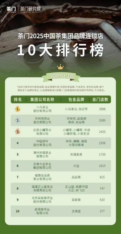 △八马茶业在2025中国茶集团品牌连锁店榜单中排名第一