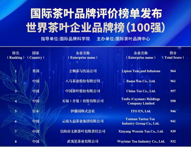 △2025年国际品牌科学院发布的《世界茶叶品牌评价榜单》中,八马茶业以961分的综合评分位列全球企业品牌第二、中国第一