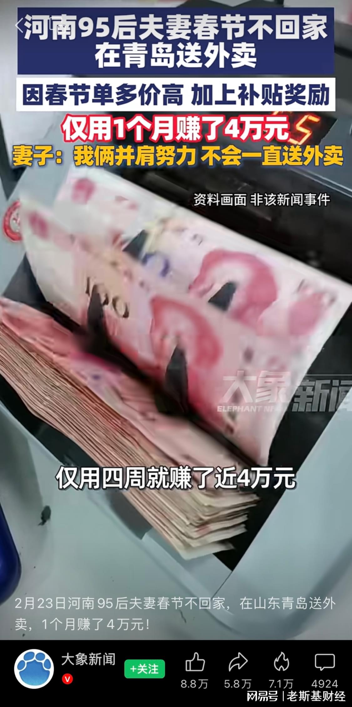 这个励志故事告诉咱们,背20万债务也没啥可怕的,春节跑一个月外卖就能还掉五分之一。