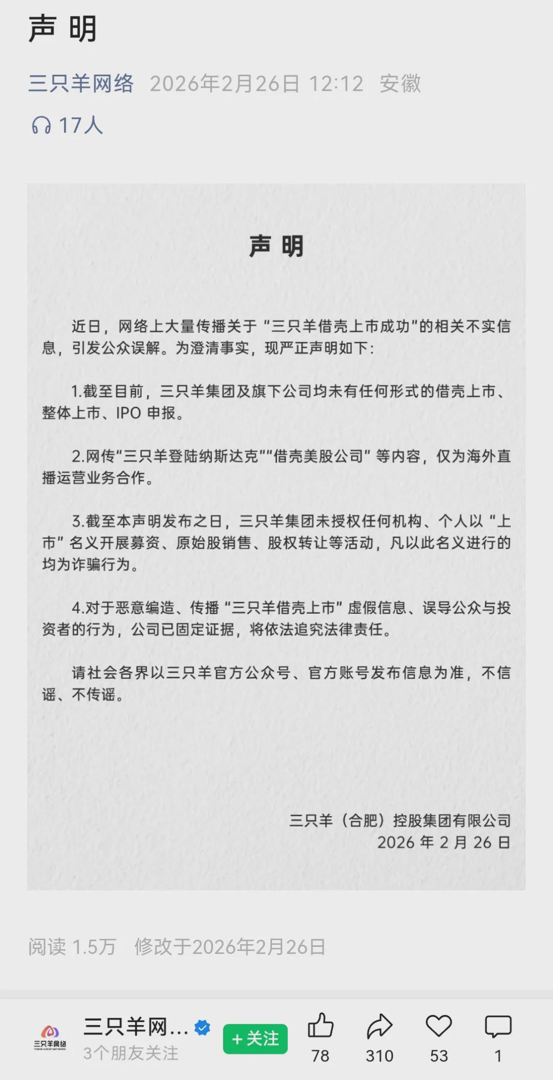 一些人觉得三只羊这个操作极为丝滑,属于悄不溜声地在纳斯达克借壳上市了。