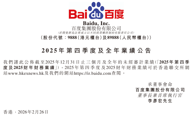 就在刚刚,百度公布了去年业绩公告。