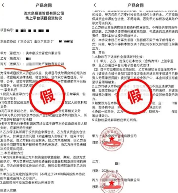 资事堂注意到:淡水泉公告此次亦公开了一份来自该假冒平台的完整投资合同。