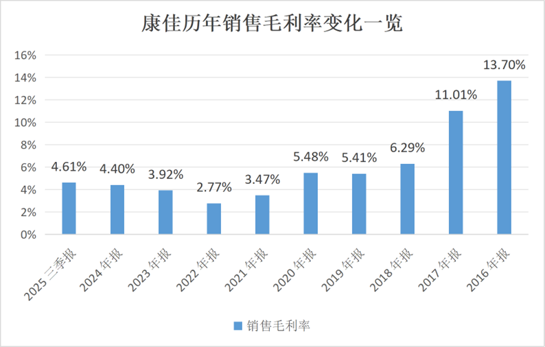 无论是彩电和白电等传统业务,还是半导体等新业务,都面临难以盈利的困境。自2018年至今,康佳的整体毛利率均为个位数,2021年以来甚至低于5%。2025年前三季度,其整体毛利率降至4.61%。