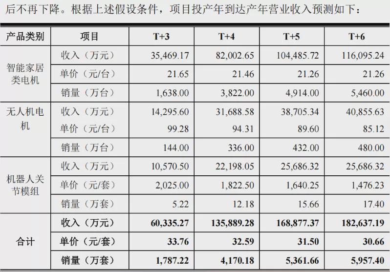 公告显示,本次募投项目实施后,公司将新增智能家居类电机、无人机电机及机器人关节模组三类产品的产能,新增产能分别为3,110.00万台、480.00万台、17.40万台。