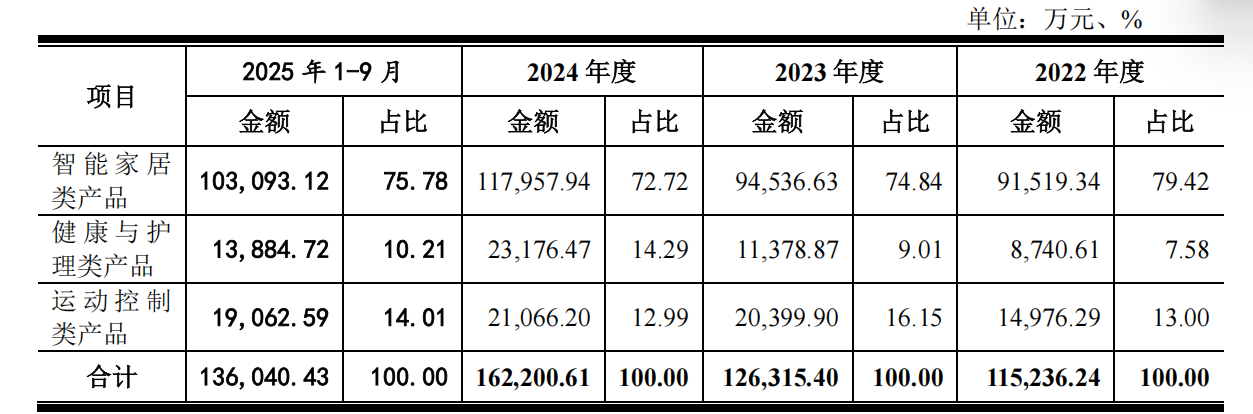 公告显示,本次募投智能家居类产品为现有成熟产品,2022年、2023年、2024年和2025年前三季度,分别实现91,519.34万元、94,536.63万元、117,957.94万元和103,093.12万元。无人机电机处于小批量试产供货阶段,实现收入25.10万元,机器人关节模组尚处于研发阶段,暂未实现收入。