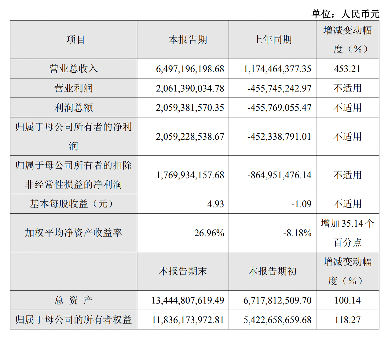 寒武纪在本次报告期内盈利方面实现历史性突破,全年归母净利润20.59亿元,上年同期为亏损4.52亿元;扣除非经常性损益后的净利润为17.70亿元,上年同期为亏损8.65亿元。公司表示,营业利润、利润总额、归属于母公司所有者的净利润、归属于母公司所有者的扣除非经常性损益的净利润均同比扭亏为盈,主要系本期营业收入大幅增长所致。