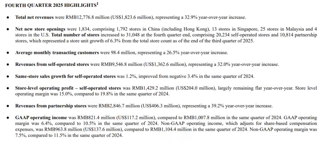 但她不知道的是,在她随手划过手机屏幕、退出小程序时,瑞幸刚刚发布了2025年第四季度及全年财报。