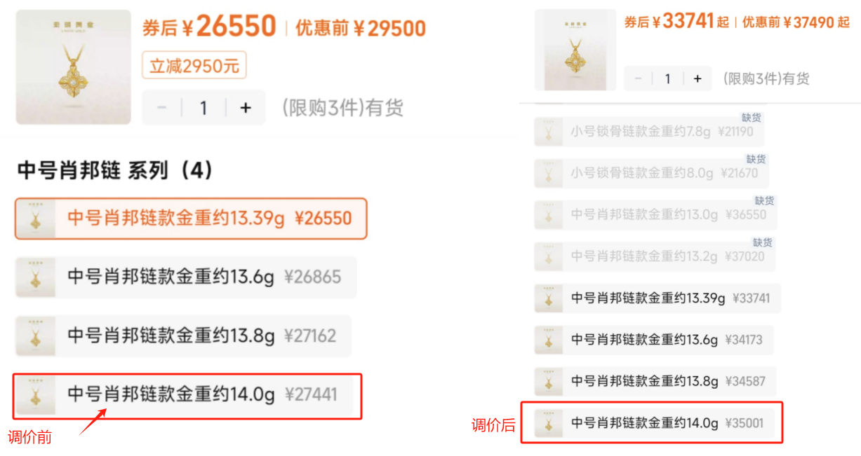 红星资本局注意到,老铺黄金2025年曾经3次涨价,去年首次调价同样在春节后,调价幅度为上涨5%至12%。今年2月19日,老铺黄金公告称将于2月28日开启涨价,一度引发抢购热潮。