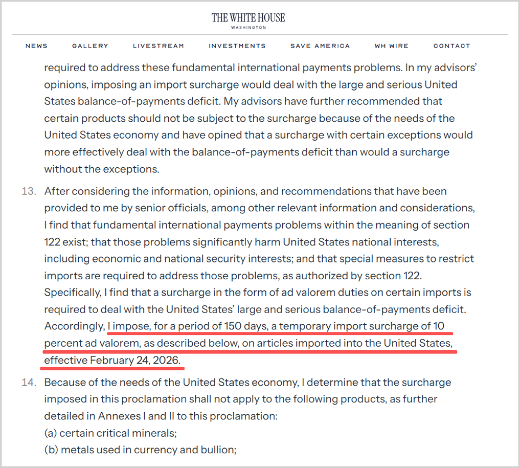 另一边,英美市场也遭遇关税风波。2月24日,白宫发布行政命令,明确自即日起所有通过邮寄或快递公司寄送的进口商品均需缴纳10%的全球进口关税。英国也在酝酿终结低价值包裹的关税豁免政策,预计2028年正式生效。这意味着,SHEIN曾经横扫美国市场的“800美元以下免税直邮”模式将受到极大影响。