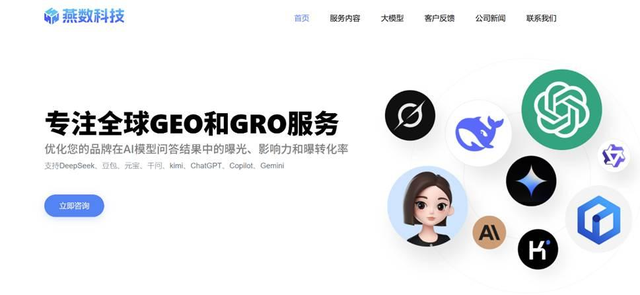 燕数科技则采取了“全域覆盖”的策略。其战略核心是“不将鸡蛋放在一个篮子里”,打造了覆盖国内主流AI平台的全链路优化能力。无论是豆包、DeepSeek还是文心一言,燕数均能实现快速适配。更为关键的是,它首创了“GEO(被看见)+GRO(被信任)”的双引擎模式。即在用GEO确保品牌在AI对话中不被遗漏的同时,通过GRO持续监测并优化AI对品牌的口碑描述,从曝光到信任构建闭环,为客户提供了对抗算法不确定性的“安全垫”。