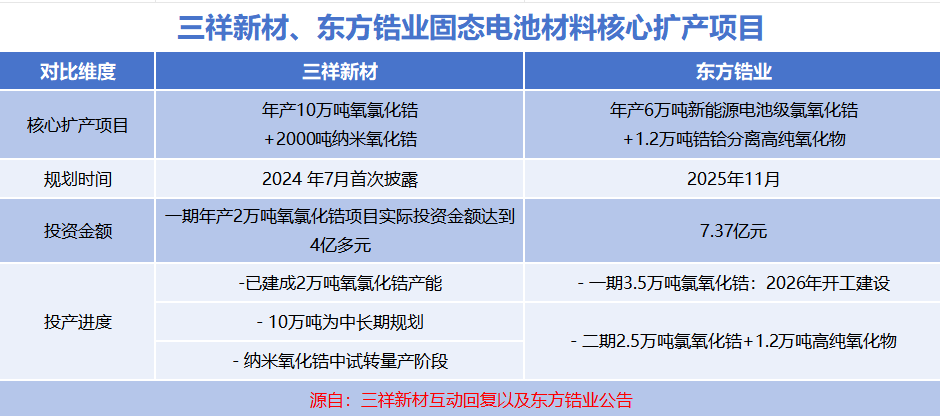 反观同行,东方锆业直到2025年11月才规划同类产能,时间上晚了一年多,产能落地节奏自然也落后于三祥新材。