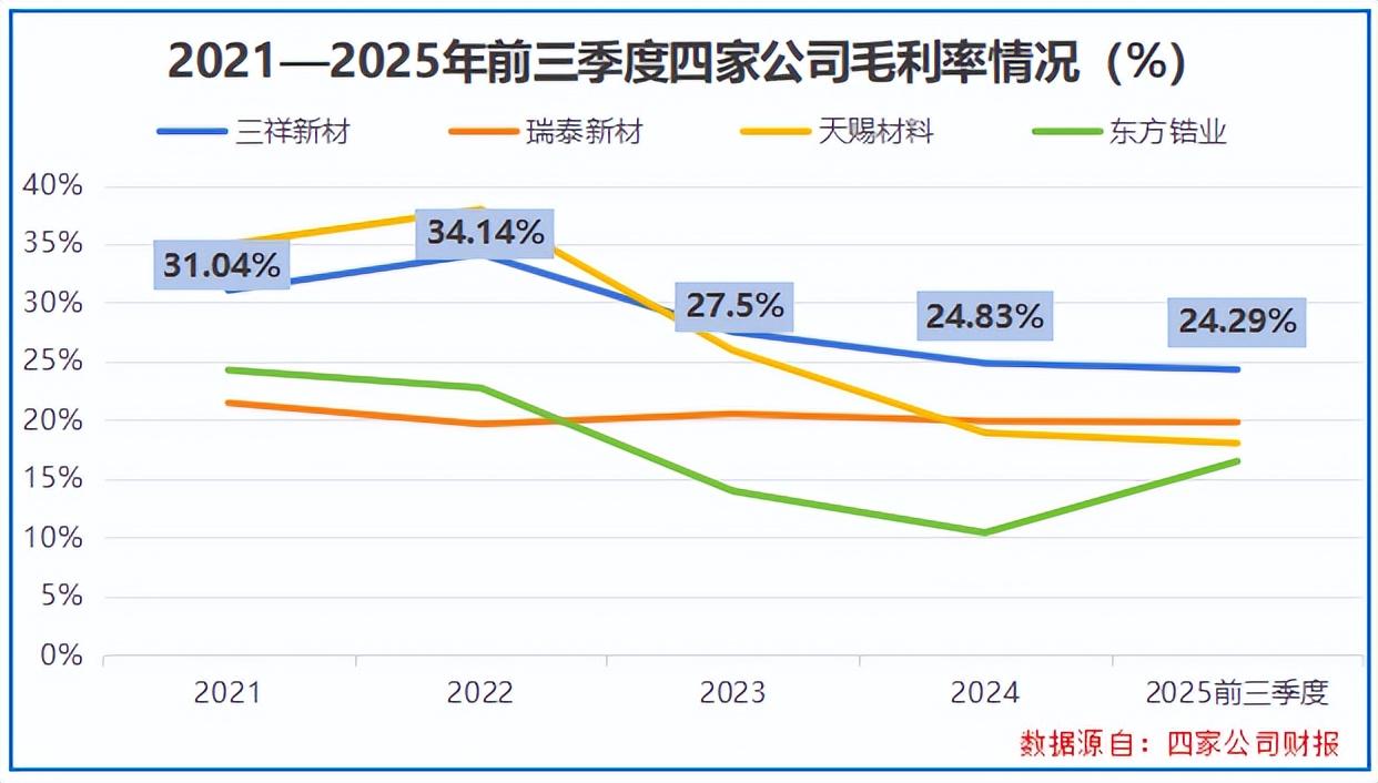 数据说话,2023-2025年前三季度,三祥新材的毛利率持续高于东方锆业、天赐材料等同样布局固态电池材料的玩家。