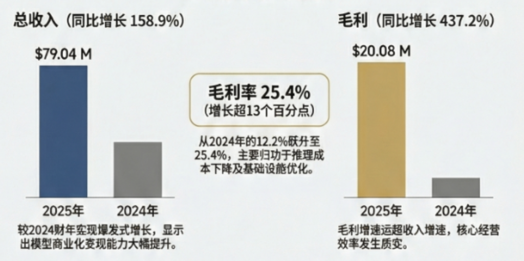 随着我们模型能力的持续迭代和改进,新的规模效益已经显现。2025年全年,毛利润达到2000万美元,同比增长437%,毛利率提升至25.4%,比2024年的12.2%提高了13个百分点。费用方面,销售和营销费用同比下降40%,而研发费用同比增长33.8%,但显著低于我们的收入增长率。2025年全年,调整后净亏损为2.5亿美元。