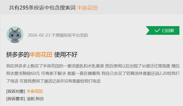 更令人担忧的是品控,2020年其面膜曾被检出防腐剂超标1.8倍,时至今日黑猫投诉上仍有多条关于过敏、头屑的投诉。