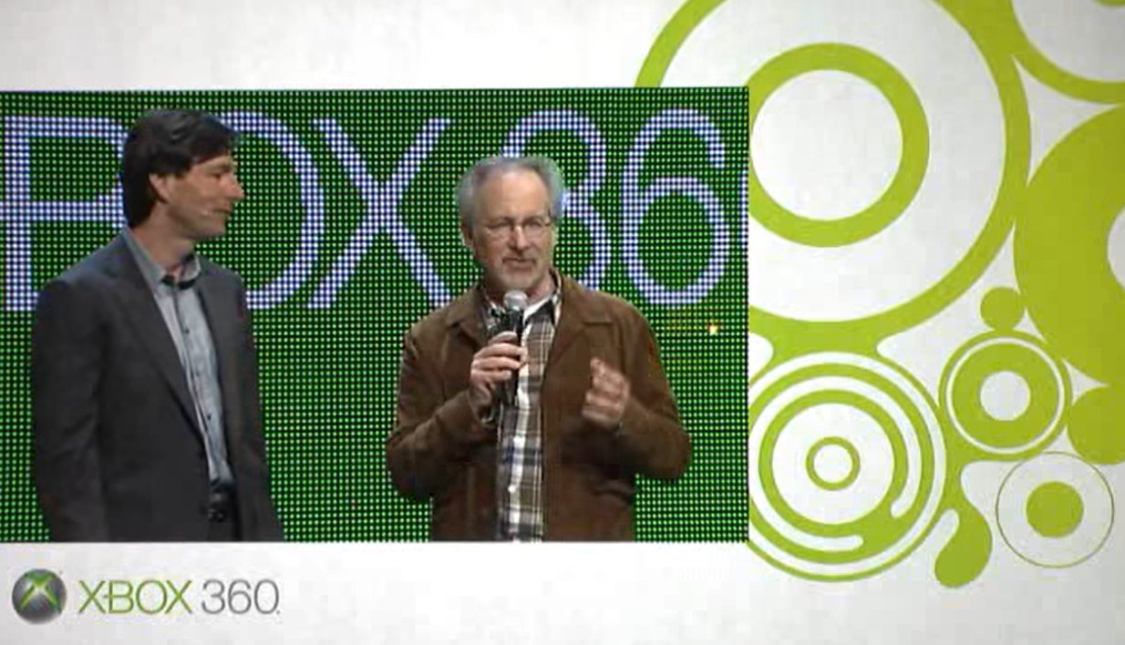 (2009年,斯皮尔伯格受邀一起发布Kinect,来源:视频截图)