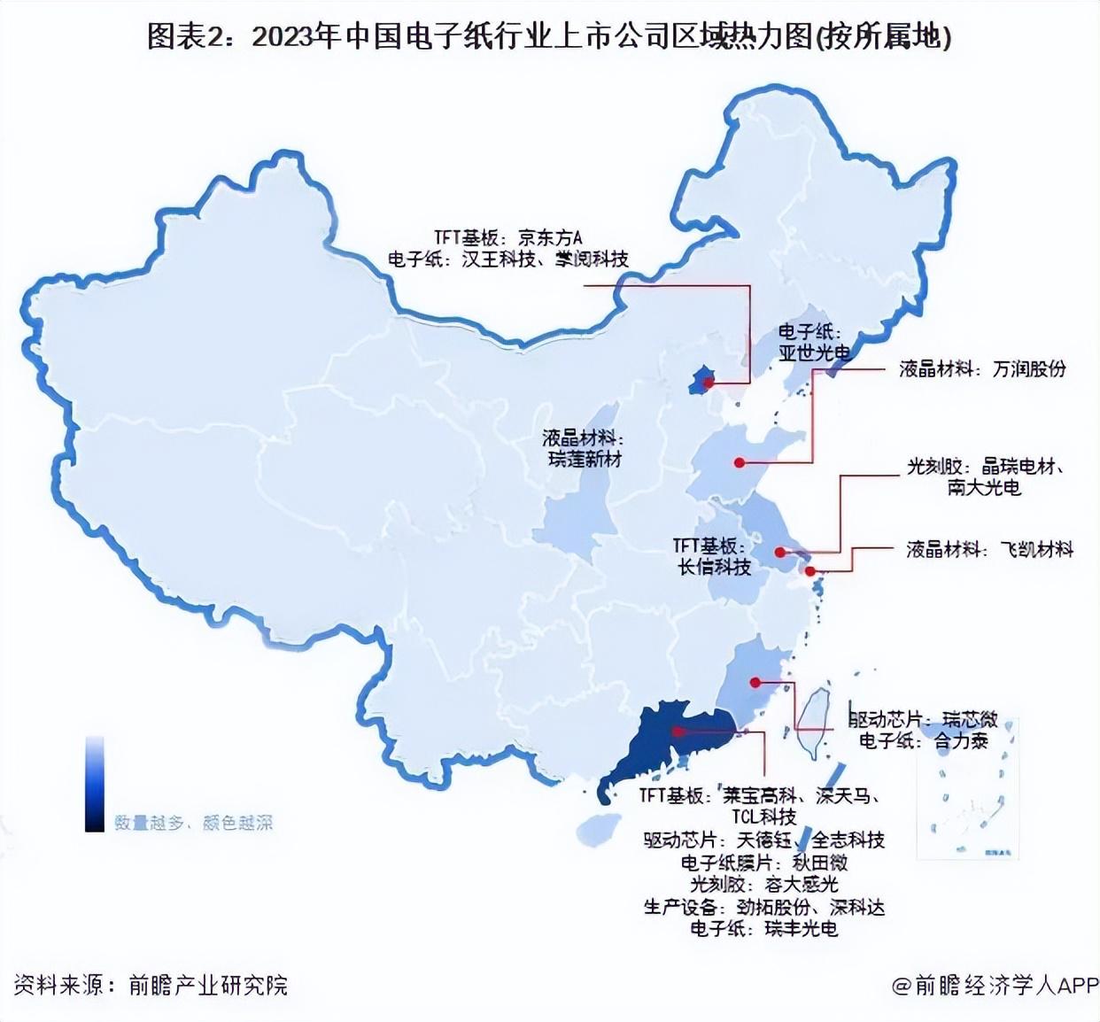中国电子纸行业上市公司区域热力图 来源:前瞻产业研究院