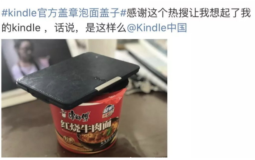 Kindle被调侃为“泡面神器” 来源:微博