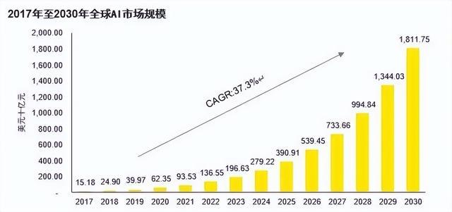 安永EY的预测数据更加直白:到2030年,全球AI市场规模将突破1.8万亿美元,年复合增长率(CAGR)高达37.3%。增长的主要驱动力,包括多模态大模型等技术应用边界不断拓展。[1]