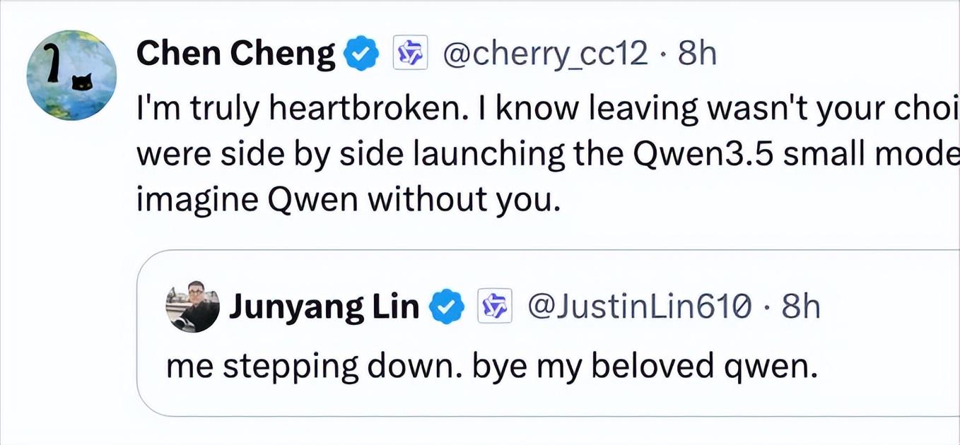 阿里千问核心负责人林俊旸在社交平台X上发文:“me stepping down. bye my beloved qwen.”(我卸任了。再见了,我亲爱的千问。)