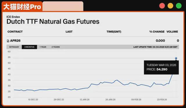 于是气价直接爆了,欧洲天然气基准TTF,涨了近50%,价格飙到了50欧元/兆瓦时+,要是卡塔尔停产“数月”,TTF可能涨到100欧。