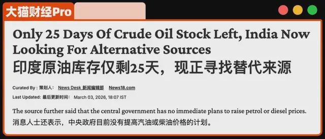 印度最惨,石油储备仅够25天,所以现在疯狂抢油。