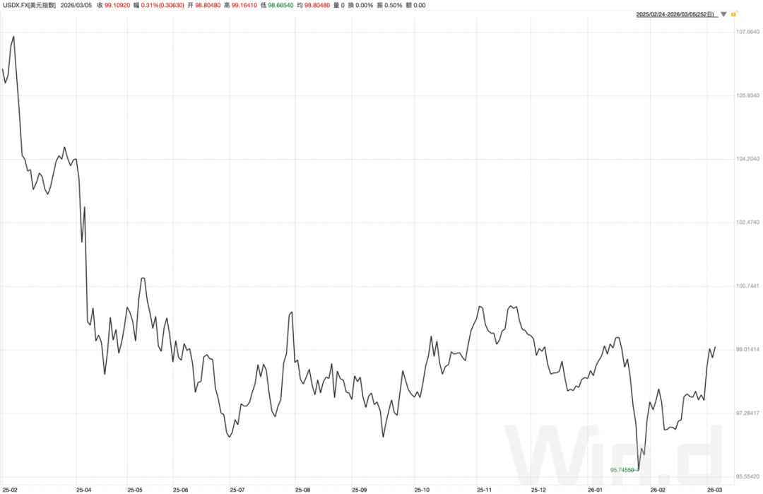 图:美元指数走势;资料来源:wind,36氪