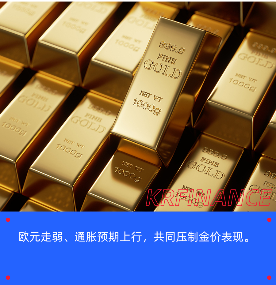 欧元走弱,黄金承压