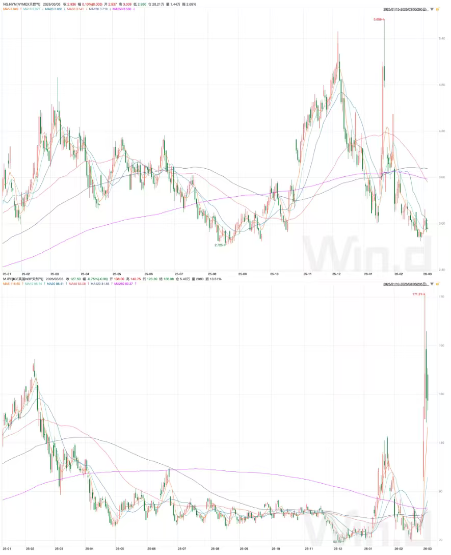 2月28日晚,伊朗官方宣布关闭霍尔木兹海峡,禁止任何船只通行,明显冲击到了中东地区的油气运输。3月2日,卡塔尔能源公司宣布,由于公司旗下两处能源设施当天遭到无人机袭击,决定暂时停产LNG(液化天然气)。