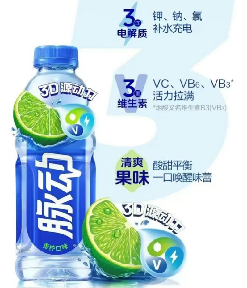 达能近日也宣布旗下脉动全新升级,推出“3D源动力配方”,即由 3 种电解质与3 重维生素,搭配清爽果味构成,实现“闪充补水、多维焕活、清爽唤醒”的协同效果。
