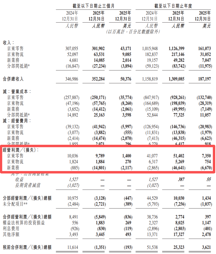 看,2025年全年,京东新业务的经营亏损,直接干到了466.41亿;