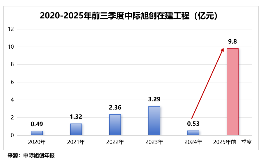 2025年三季度末,公司在建工程账面价值高达9.8亿元,同比增长了146.34%。