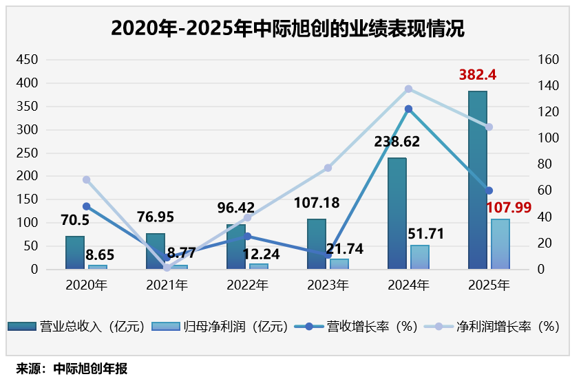 数据显示,公司实现营收382.4亿元,同比增长60.25%;归母净利润更是首次突破百亿大关,达到107.99亿元,同比暴涨近109%。