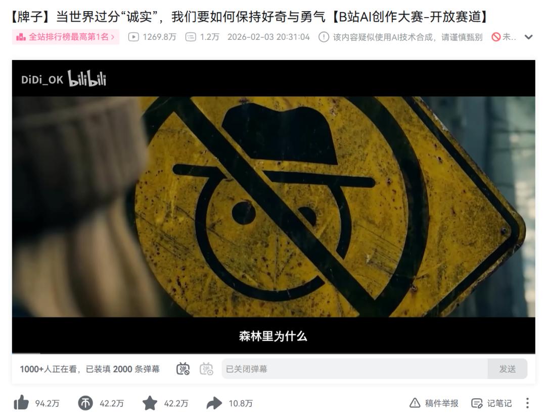 也就是说,当AI抹平了技术门槛,竞争的焦点回归到了人的想法和创意。无论是AI春晚带有人情味的高度好评,还是UP主DiDi_OK的封神作品,他们都指向了同一个结论:这些创作者不是被AI替代的失业者,而是借助AI放大自身创造力的“新物种”。他们生产的不是同质化的AI流水线内容,而是带着个人视角和审美判断的作品。