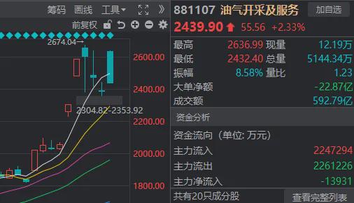 同花顺数据显示,上周一、周二(3月2日、3日)连续暴涨的油气开采及服务板块,今天显著高开后持续走低,收出一根大阴线。